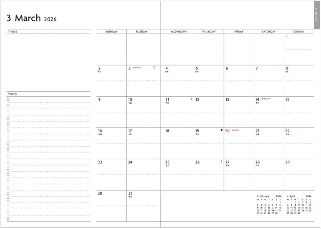 •メリット: 月間と週間の両方が使える。価格が手頃