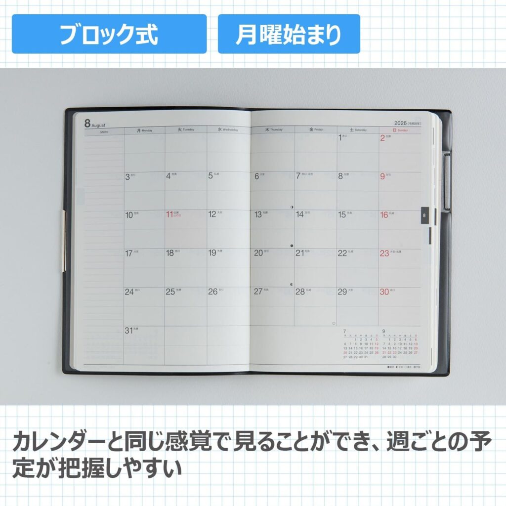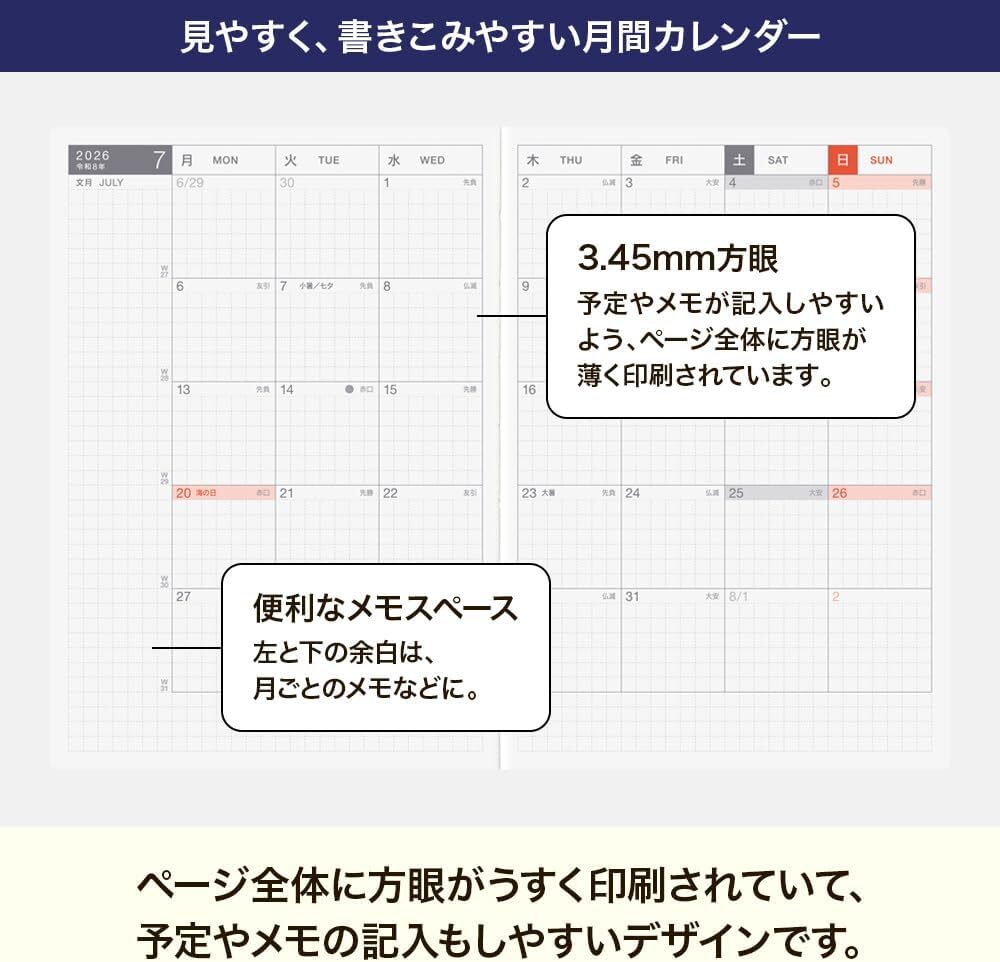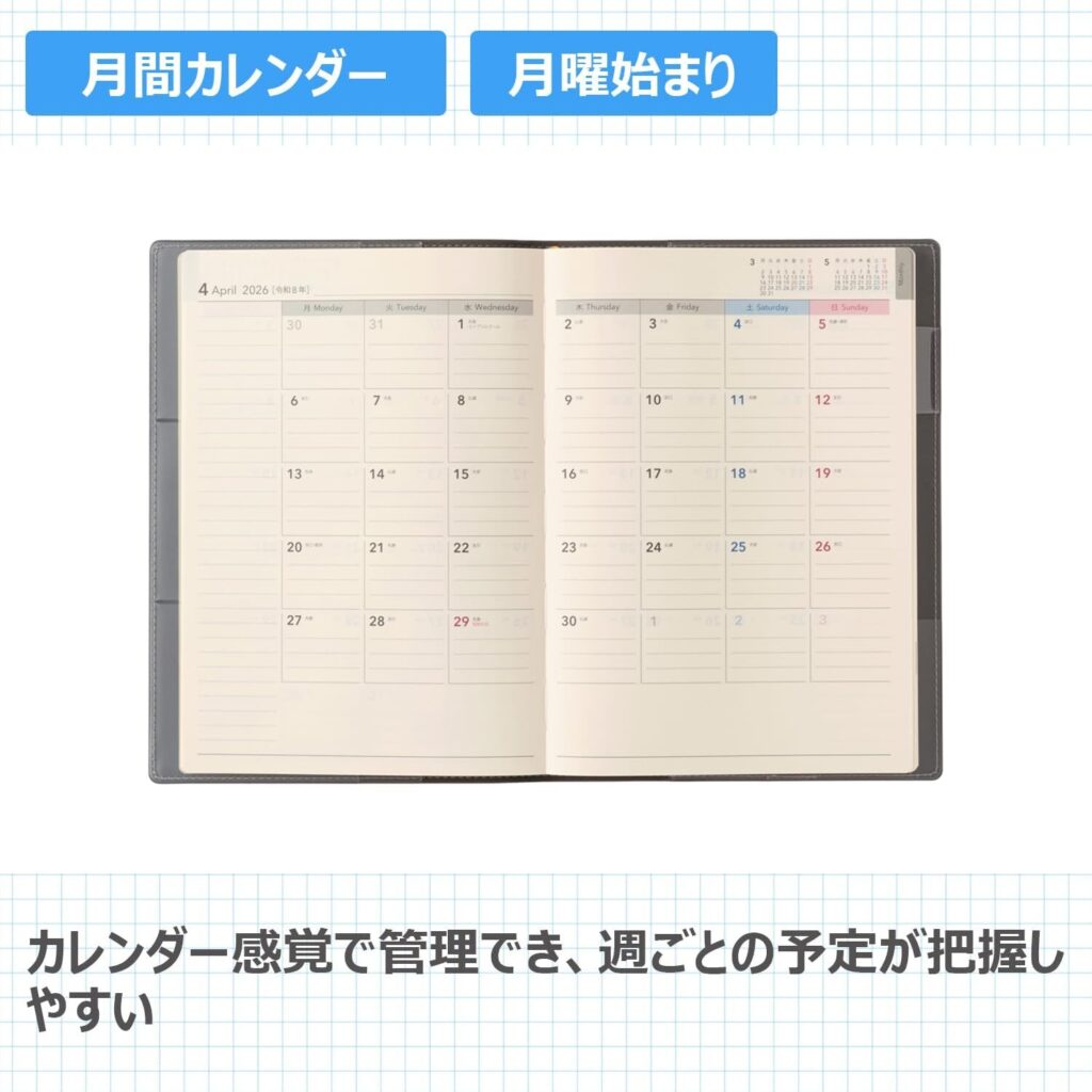 •こんな使い方に向く: 予定+メモの管理・デスクに置いてもサマになる手帳