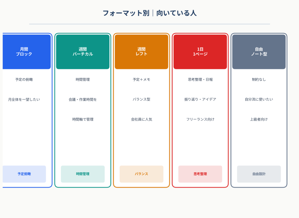 - 自由ノート型:フォーマットに縛られたくない上級者向け